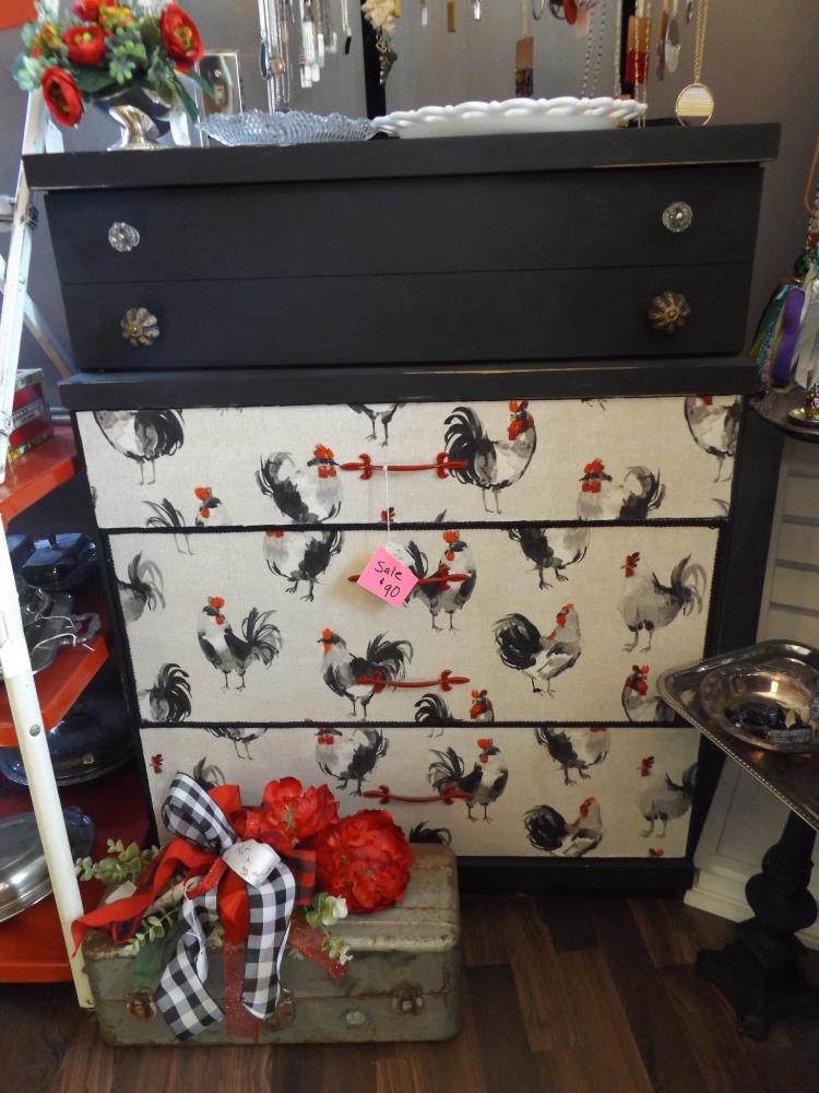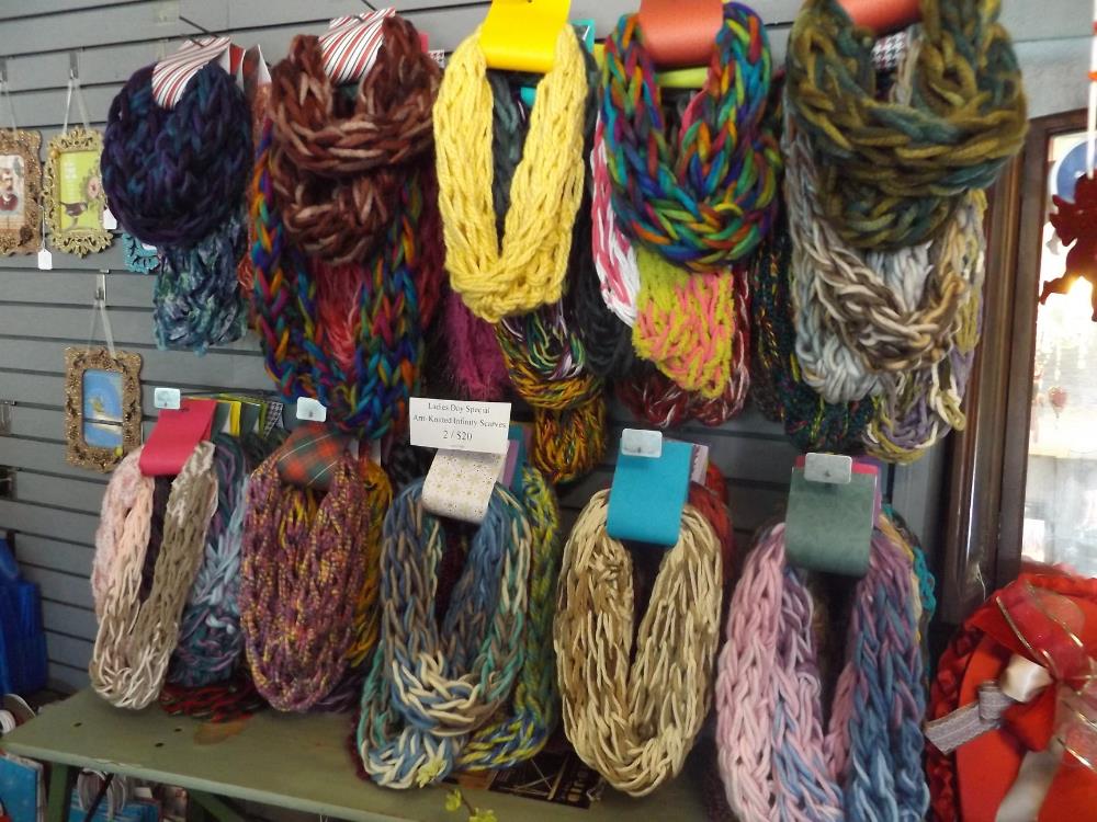 Tighe It With A Bow offers unique, creative and interesting gifts, jewelry and home décor. Prices range from $7.50 and $10 for earrings, up to $275 for up-cycled, one-of-a-kind furniture pieces. There is a large selection of silver plate as well as some vintage platters, tureens, trinkets, etc and a host of hand-crafted jewelry, gift items and silk floral arrangements. There's something for all you gals out there. Stop in today!